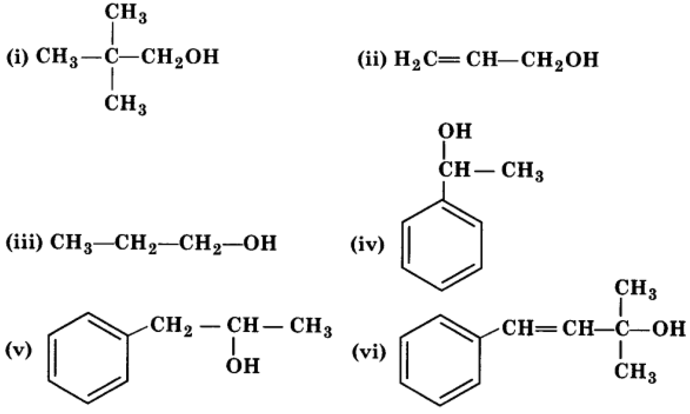 उत्तर:-प्राथमिक ऐल्कोहॉल: (i),(ii),(iii) द्वितीयक ऐल्कोहॉल: (iv),(v) तृतीयक ऐल्कोहॉल:(vi)