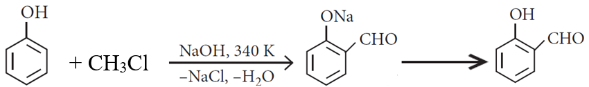 Monochlorination of toluene in sunlight followed by hydrolysis with aq. NaOH yields.