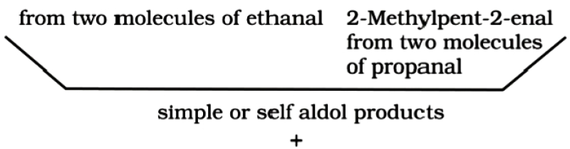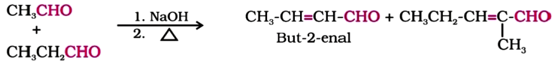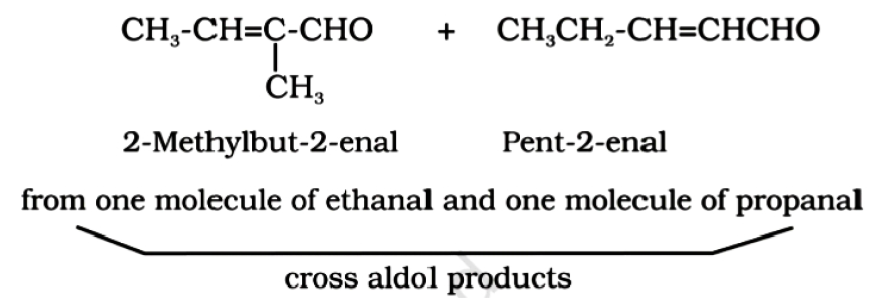 Explain. When aldol condensation is carried out between two different aldehydes / ketones, it is called cross aldol condensation. If both of them contain α-hydrogen atoms, it gives a mixture of four products.