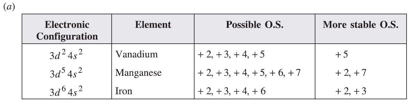 3d3 4s2 , 3d5 4s2 and 3d6 4s2 . Indicate relative stability of oxidation states in each case.