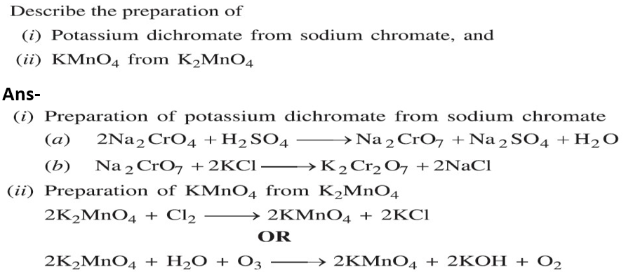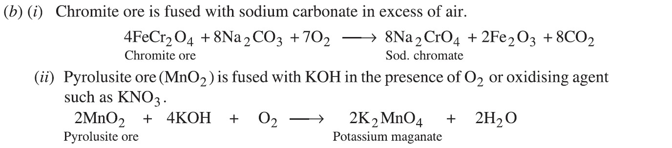 (b) Write steps involved in the preparation of (i) Na2CrO4 from chromite ore and (ii) K2MnO4 from pyrolusite ore.