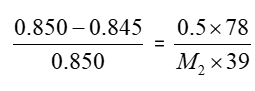 =0.850 bar; p = 0.845 bar, M1 = 78g mol-1; w2 = 0.5 g; w1 = 39 g