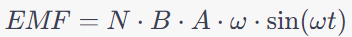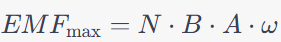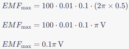Let’s calculate the maximum voltage (EMF) produced in the coil: