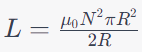 This formula provides the self-inductance of a circular coil in terms of its physical parameters and the permeability of free space.