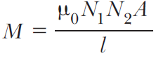 where A is area of coil, l is length of solenoid, N1 is number of turns in solenoid and N2 is number