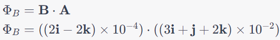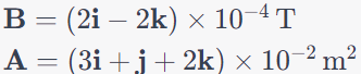 15. Find the magnetic flux passing through a loop of area (3i + j + 2k) x10-2 m2 which is placed in a magnetic field of (2i -2k) x10-4 T